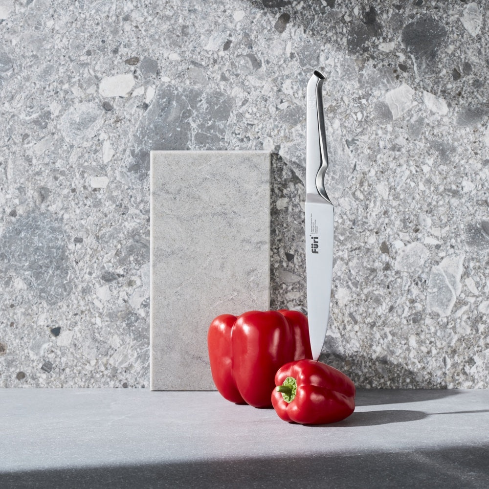 The perfect starter set for creating inspirational meals. The knives fit neatly into this stylish knife block made from rubberwood and teak. Crafted with the innovative Furi wedge shaped handle and ultra-strong blades to deliver outstanding comfort, performance and balance. The set offers the Utility, East/West Santoku and Bread Knife. All stored in a stylish and compact knife block.