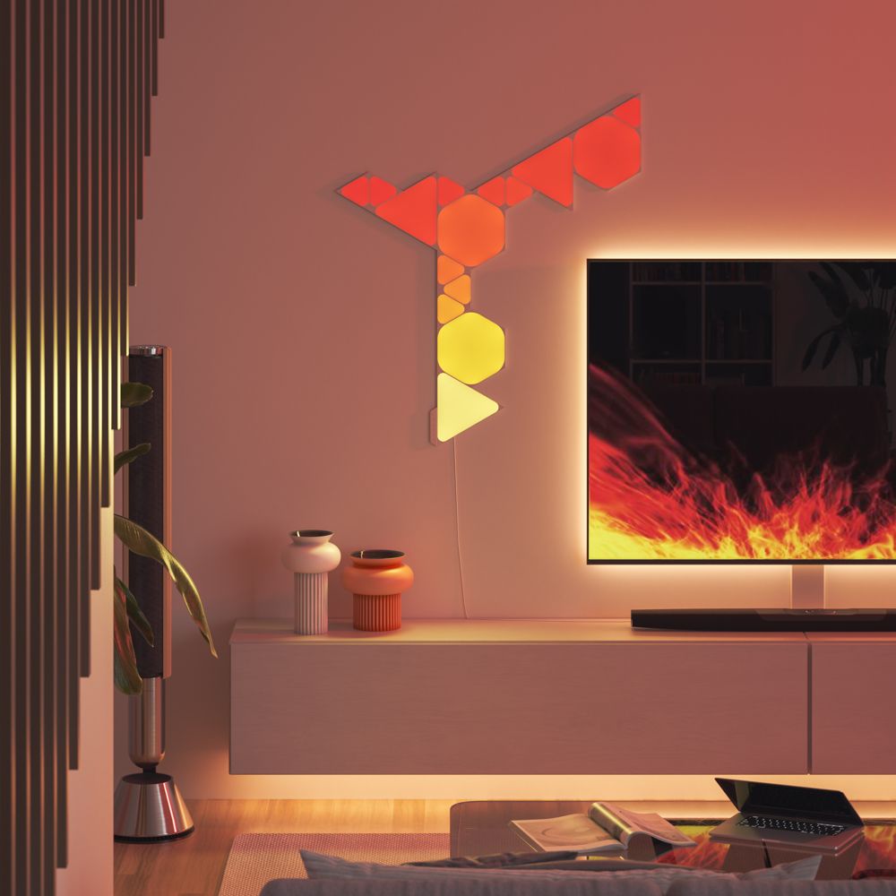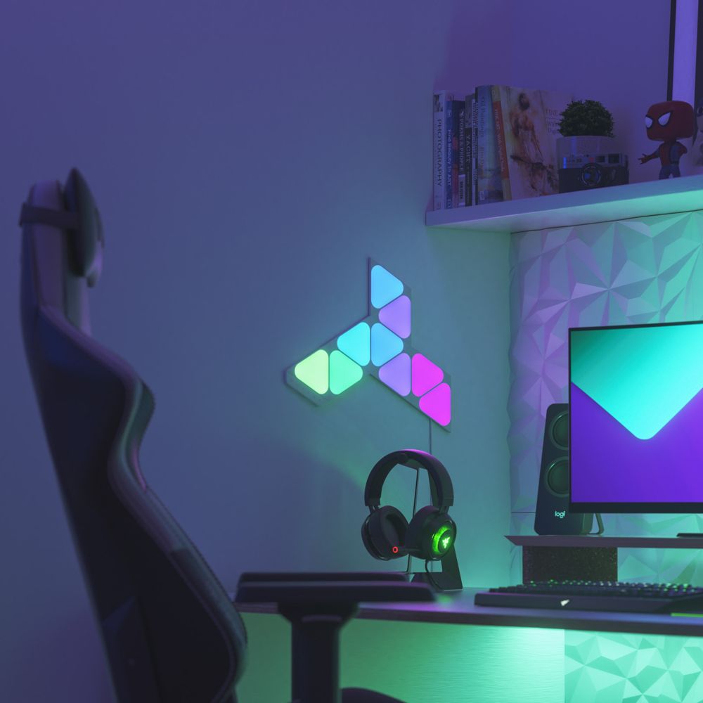 Nanoleaf Shapes - Mini Triangles are compact modular LED light panels with a combination of smart technology and sleek ultra-thin design. It's perfect for designing a statement wall, setting up your personal productivity zone, or creating the right ambience for any occasion. Transform your space with multi-sensory experiences like touch interactions, real-time music sync, screen mirror, and more. Customise and create your own Scenes and Playlists in the Nanoleaf App.